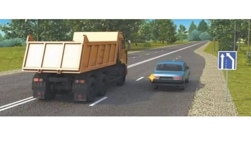 На картинке показана дорожная ситуация, где оба транспортных средства планируют двигаться по одной полосе. Логично, что одному из них для этого придется уступить проезд другому. Но кто это будет? Давайте проверим, хорошо ли вы разбираетесь в правилах дорожного движения.