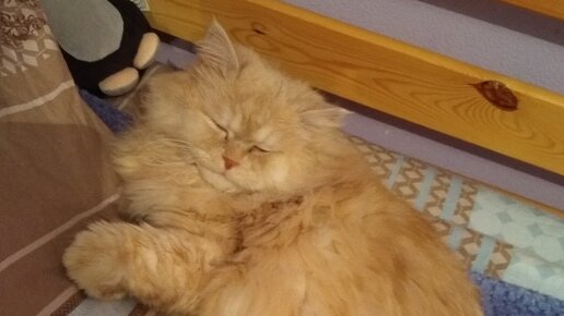 Практически ежедневно наш телефонный разговор с мамой заканчивается её вздохами сочувствия...Персику. Да-да. Мама уверена, что бедного "ребёнка", её любимчика, угнетают)) Почему? Потому что этот курносый обормотик очень любит спать на коврике у двери. Вот прям обожает этот коврик! И вообще в плане сна очень неприхотлив. Как про него папа всегда говорит - где упал там и заснул. Вот точно. Шел-шел, шмякнулся посреди пола/, пузом кверху и уже сопит)). А Каму наоборот с кровати согнать очень сложно)...