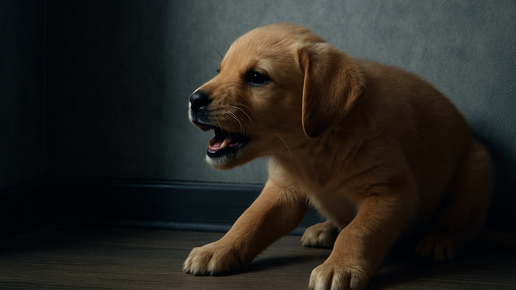 Щенок рычит на стену. Только в одном углу , и туда давно никто не ставит мебель
