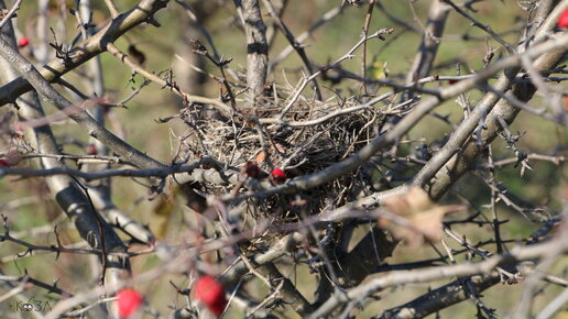 Гнёзда птиц, найденные за этот холодный сезон. Конечно, интересует вопрос - кто их свил? Конечно, совсем не обязательно, что птицы вернутся на эти гнёзда. Но, может, поблизости еще кто-нибудь устроит новое. А эти гнёзда займёт кто-то еще. И одном, похоже, этот "кто-то" уже использовал для своих целей. Вот на таких склонах, спускающихся к прудам, в одних местах заросших колючим боярышником, в других - покрытых травянистой растительностью, под прикрытием лесополосы из дубов на вершине склона балки и раскидистых крон старых дубов, растущих у воды, птицы строят гнёзда и выводят птенцов...