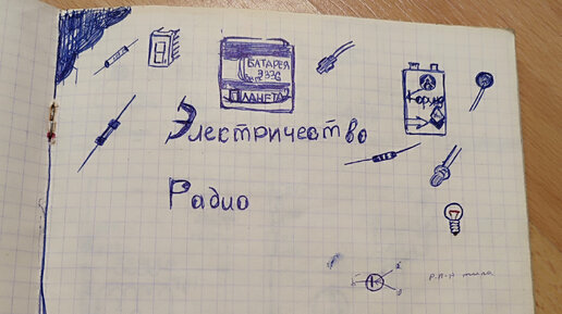 После успешного ремонта и настройки трансивера Владимир Иванович наконец решил нас чему-то научить. Он принялся воодушевлено и с азартом читать нам лекции о напряжения и токе, о законе Ома, знакомил нас с радиодеталями и для чего они предназначены. Мы завели тетради и честно и со старанием записывали туда конспекты, рисовали схемы. Как я уже писал тут, первый урок был о транзисторах! уж не знаю почему. Наверное, потому что в последствии мы стали собирать первый детекторный приемник на одном транзисторе...