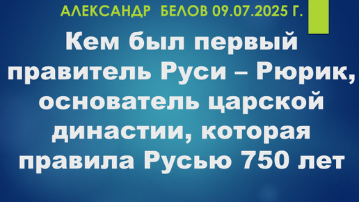 Кем был первый правитель Руси – Рюрик, основатель царской династии, которая правила Русью 750 лет. Александр Белов 09.07.2025 г.