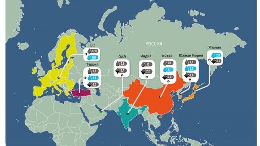 Кто покупает российские нефть, газ и уголь в 2023 году. Инфографика