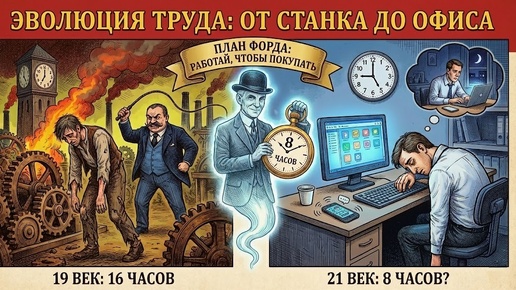 Прямо сейчас миллионы людей едут в офисы и на заводы к 9:00, чтобы уйти в 18:00. Кажется, что так было всегда. Что человеческий организм настроен именно на такой ритм. Но если бы вы сказали крестьянину 18 века или рабочему 19 века, что будете работать всего 8 часов, они бы расплакались от счастья. А если бы сказали экономисту 1930-х годов, что мы в 2025 году все еще работаем по 8 часов, он бы решил, что человечество сошло с ума. В разгар Промышленной революции (XVIII–XIX век) понятия «график» не существовало...