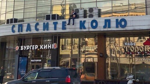 Неординарным поступком отметился в центре Воронежа директор кинотеатра «Пролетарий» Николай Шалыгин. Прохожие заметили, как он сидел на козырьке здания и болтал ногами, а рядом была надпись «Спасите Колю», сделанная из букв, из которых складывают названия фильмов.