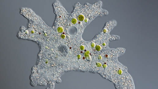 Амёба обыкновенная (лат. Amoeba proteus) или амёба протей (корненожка) — амёбоидный организм, представитель класса Lobosea. Характеризуется непостоянной формой тела, наличием многочисленных (до 10 и более) псевдоподий - выростов, выпячиваний цитоплазмы клетки. Строение Покров амебы представлен только цитоплазматической мембраной, вследствие чего амеба имеет непостоянную форму тела, то есть образует ложноножки. Мембрана дифференцируется на два слоя: гиалоплазма, более светлая часть и гранулоплазма, более темная...