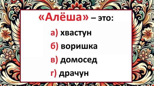 Кого раньше называли «алёшей» или «алёхой»? Предлагаем вам самостоятельно угадать значение этих слов, пройдя наш мини-тест.