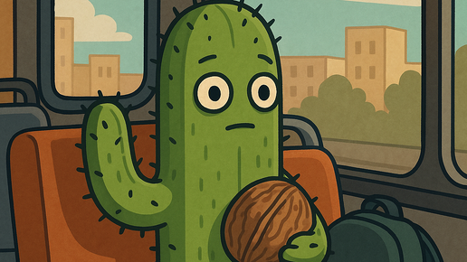 Привет, друзья! 👋 Вот скажите честно: вы тоже видели этого кактуса в TikTok, который вечно едет на автобусе с орехом?