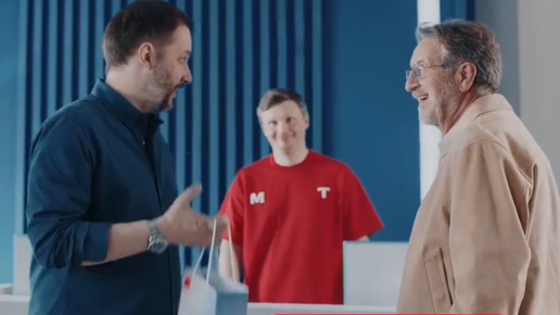 Новая серия роликов от компании МТС объединена между собой двумя видными интересными мужчинами, которые и являются основными героями (мой ТГ). По сюжету в первом рекламо-ролике некий мужчина постарше купил смартфон для в салоне-МТС, но за чужие деньги, которые ему перевели. Таким образом, Он получил кэшбэк и может дальше покупать смартфоны с весомой скидкой. Ну а второму, менее узнаваемому достался смартфон. Каждому свое! Рекламный текст: Это салон системы МТС, где очень выгодно покупать смартфоны...