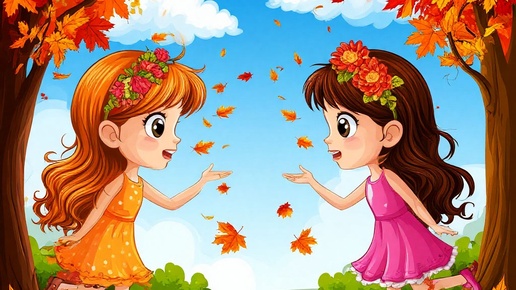 Жили-были две могущественные сестры: Лето и Осень. Лето — в легком платье, босоногая, с волосами цвета спелой пшеницы, собранными в тугую косу и украшенными полевыми цветами. Изображение сгенерировано искусственным интеллектом Осень — в пёстром платье, подбитом мягким мехом. Её распущенные русые волосы венчал венок из разноцветных кленовых листьев, на шее красовались бусы из алых рябиновых ягод, а в руках она сжимала дубовый посох, украшенный резными рисунками грибов да ягод. Изображение сгенерировано искусственным интеллектом Правили сестры каждый год по очереди...