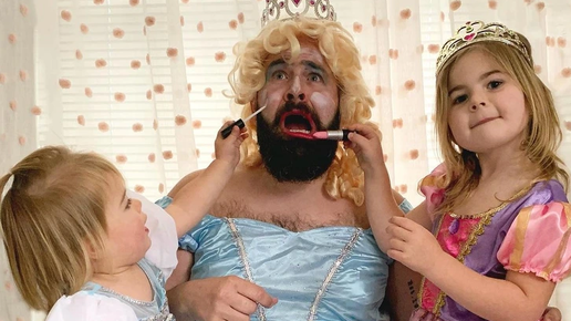 Любящие папы порой готовы пойти на самые настоящие подвиги, лишь бы порадовать детей, особенно если это милые дочурки. Один из таких пап - герой нашей статьи. Мужчина совместил приятное с полезным: освободил жене время на отдых, прославился в сети и оригинальным способом рассказал свою историю о том, каково это быть отцом девчонок. Все, что ему нужно - вдохновение, костюмы, и вуаля, обычная игра с детьми превращается в праздник. В этой подборке я приготовила только самые лучше фото папы и его дочурок...