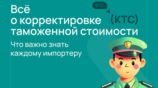 Многие импортеры впадают в панику, когда узнают, что их товар попал на корректировку таможенной стоимости (КТС). Не нужно КТС бояться! Это достаточно стандартная процедура, которую можно пройти, если вы умышленно не занижаете стоимость, если вы знаете все ее нюансы и особенности. Читайте подробности в этой статье! это процедура, при которой таможенные органы проверяют и, при необходимости, изменяют заявленную стоимость товара, который ввозится в страну. установить реальный тариф на товар, соответствующий рыночным условиям и предоставленным документам...