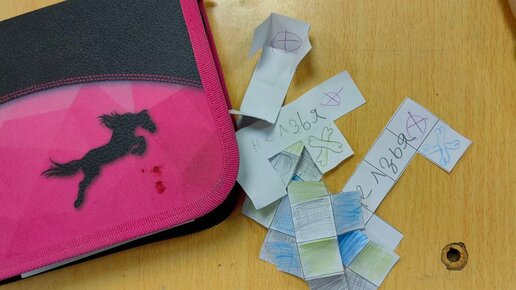 После задач на слои и узлы наконец-то переходим к работе с объёмом, а именно к развёрткам. Основная идея этой подборки — нужен важный повод, чтобы внимательно рассмотреть развёртку, а не просто вырезать её и сложить куб. В общем виде решение задач выглядит так: ученик вырезает развёртку, сгибает по всем линиям и получается (или не получается) куб. После этого ученик выполняет задание листочка. Если я вижу ребёнка, у которого начинает хорошо получаться, то предлагаю более сложную версию: сначала раскрасить/нарисовать, а потом уже вырезать и сложить, чтобы проверить себя...