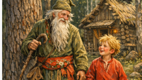-Что Ивашка, сидишь? -Сидю, - зевнул парнишка, в красной рубахе, полосатых штанишках, в лапотках, с аккуратно намотанными онучами. Соломенного цвета волосёнки дыбились в разные стороны, нос, облупившийся на солнышке ещё, не оброс новой кожей, был подёрнут тонкой, розоватой кожицей. Щёчки были словно румянами девичьими накрашены, глаза круглые, блестящие, живые и весёлые, губки алые, что у девицы. -Ну- ну, - старик стоял, облокотившись на клюку, с седой длинной бородой, с крючковатым носом, в зелёном кафтане, подпоясанный алым кушаком, на котором были вырисованы чудесные цветы...
