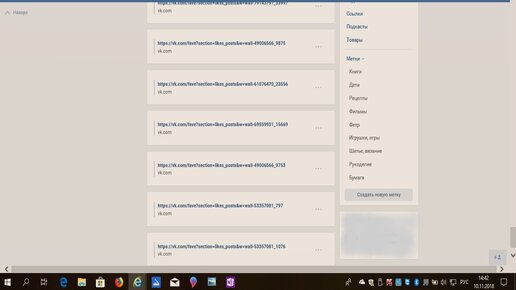 Когда я заходила в ВК, то не любила просто лайкать посты или постить на стену. Мне бывает неинтересно, когда в моей ленте полно репостов о бесплатностях, всякие мимимишности, котики и проч., от моих друзей/знакомых. Поэтому всё, что мне нравилось, я лайкала, а когда было время, в закладках создавала ссылки. Там был заголовок и сама ссылка. Недавно команда ВК обновила функцию "Закладки" и вроде бы сделала управление закладками намного удобнее благодаря меткам. НО! При этом стали недоступны те статьи, которые ранее были размещены мной в разделе "ссылки"...