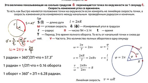 Сама по себе тема угловой скорости не сложная. Просто она в обычной жизни не применима. Вот в различных инженерных задачах и в задачах по движению по окружности она необходима. А так-как в обыденных условиях её ни к чему не привязать, то она даётся школьникам не просто. Особенно им не понятно - зачем вообще считать в радианах. Ведь есть градусы. Но это уже другая тема. Здесь только расчёты...