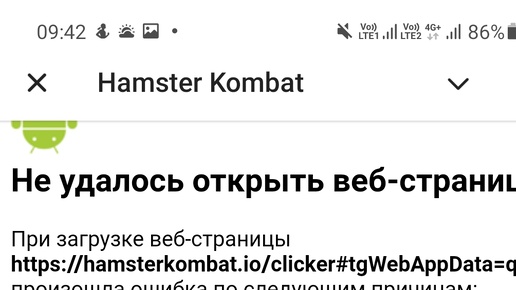 Ошибка в Hamster kombat " Не удалось открыть веб-страницу" с кодом ошибки net::ERR_NAME_NOT_RESOLVED "