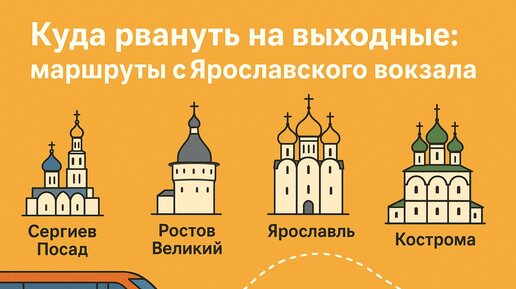 Устали от городского шума и бесконечных дедлайнов? Хочется сменить обстановку, но нет времени на долгие сборы и планирование? Самое время открыть для себя магию железнодорожных маршрутов — где сам путь становится частью приключения, а ритм колес убаюкивает и настраивает на отдых. «Навигатор впечатлений» запускает специальную серию материалов-гидов по маршрутам главных вокзалов Москвы. Начнем наше путешествие с Ярославского вокзала — настоящих врат в сказку! Под его величественными сводами с архитектурой в неорусском стиле начинается путь в самые живописные и уютные города России...