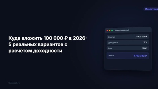 Куда вложить 100 000 ₽ в 2026: 5 вариантов с расчётом доходности от 7 до 52 тысяч