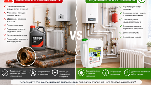 Автомобильный антифриз и теплоноситель для отопления — это разные продукты, созданные под совершенно разные условия работы. Разберёмся, почему...