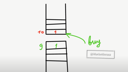 А о чем сегодня хотел поговорить? О дельте. Точнее о кумулятивной дельте. Сей инструмент достаточно богато представлен в западных терминалах, но в наших его привыкли обходить стороной. Не во всех, но в основных. Возможно, для многих сказанное ниже будет давно известной инфой, но для кого-то и нет. Народ на биржу приходит перманентно. Хотя и уходит также. Думаю, начать нужно с базы. На рынке у нас есть покупатель и продавец. Представим стакан. По цене 10 у нас стоит аск с объемом 1 контракт...