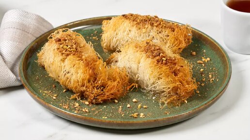 Этот десерт готовится из специального вытяжного теста в виде тончайших нитей, купить такое можно в кондитерских магазинах или восточных лавках. Горячее блюдо нужно обязательно полить сиропом и дать хорошо пропитаться, так получатся самые настоящие вкусные катаифи.