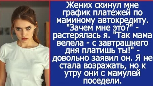 Жених скинул мне график платежей по маминому автокредиту. "Мама велела - теперь платишь ты!"