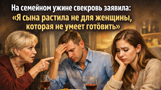 На семейном ужине свекровь заявила: «Я сына растила не для женщины, которая не умеет готовить».