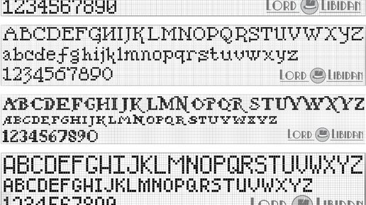 Иногда бывает необходимо вышить надпись, а нужного шрифта под рукой нет. Теперь есть! Ловите в копилочку 53 бесплатных латинских алфавита для вышивки крестом. Каких вариантов среди них только нет! Вот только несколько из них: Бесплатные шаблоны алфавитов для вышивки крестом подготовила для всех желающих редакция сайта lordlibidan.com. Шрифты разбиты на блоки в зависимости от размера в высоту (в клеточках) и увеличиваются в размерах по мере продвижения вниз по странице. Вы найдете латинские алфавиты высотой в 5, 6, 7, 8, 9, 10, 11, 12, 15 и 16 клеточек в самых разных стилях...