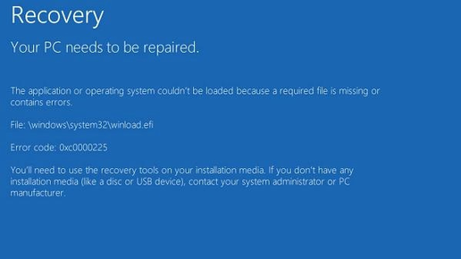 Рассмотрим еще одну распространенную ошибку загрузки Windows 10 / 8, вызванную повреждением или отсутствием файла winload.efi. Проблема проявляется следующим образом: перестает загружаться Windows 10 (Windows 8.1), как правило с такой ошибкой в консоли восстановления: Не удалось загрузить приложение или операционную систему, так ка необходимый файл отсутствует или содержит ошибки. Файл: \windows\system32\winload.efi