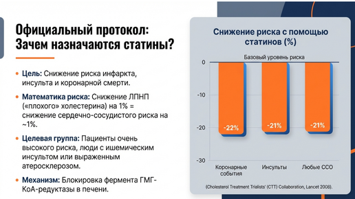 Статины назначаются прежде всего для снижения уровня холестерина в крови и уменьшения риска развития сердечно-сосудистых осложнений. В медицинской практике эти препараты считаются основным средством для профилактики и лечения атеросклероза, ишемической болезни сердца и других сосудистых патологий. Основные цели и механизмы назначения статинов: 1. Противовоспалительное действие, что особенно важно при наличии стентов или после операций, когда сосуды травмированы. 2. Стабилизация атеросклеротических бляшек, чтобы предотвратить их разрыв...