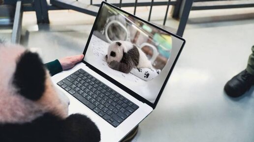 «Современный ребенок»: панде Катюше показали ее детские фото на ноутбуке