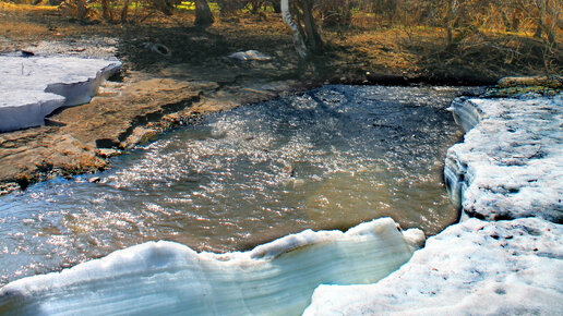 Лесной ручей недавно бушевал, ломая лёд прозрачно-голубой,