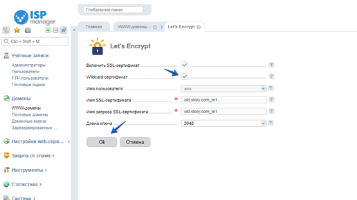 С версии 5.147.0 через ISPmanager можно выпускать бесплатные SSL-сертификаты на группу поддоменов. 3 апреля мы добавили поддержку протокола ACMEv2 от Let's Encrypt, который и позволяет получать wildcard SSL. ISPmanager упрощает заказ, автоматизирует установку и сам перевыпускает сертификат раз в три месяца. Раньше бесплатные SSL-сертификаты от Let's Encrypt нельзя было подключать на поддомены. Если кроме site.ru вы владели, например, forum.site.ru, то приходилось выпускать два сертификата, а если еще и shop...