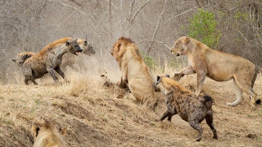 Битва за выживание: как гиены убивают грозных львов!
