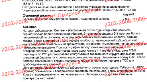 Лимфома Ходжкина. История болезни
