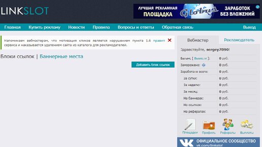 Linkslot-это система для заработка на своём сайте ссылка для регистрации. Регистрация тут очень простая как и на других сайтах. В этой системе можно зарабатывать двумя спосабами: зарабатывать с помощью своего сайта, и рекламировать рекламу на этом сайте для привлечения партнёров на другие сервисы. Система Linkslot полностью автоматизированная и приносит спокойно пассивный доход. Система Linkslot- помогает рекламадателю рекламировать свои ссылки или баннеры для привлечения партнёров на другие сервисы...
