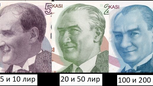 Обзор лиры Турецкой Республики с 2005г. Türk lirası. Турецкая лира, как денежная единица используется в Турции с 1926г. О первых выпусках я напишу отдельную статью. Предыдущий выпуск банкнот был произведен в 1993г. В 2005 г. в Турции прошла деноминация, из расчета 1000000 к 1 (1 000 000 старых лир на 1 новую лиру) - так и писали - Новая лира (Yeni lirasi). Банкнота номиналом 500000 лир образца 1993 г выпуска 1997г. Вид: двухсторонняя, горизонтальная. Размер: 160*76 мм. Цвет: сиреневый. Дизайн: лицевая сторона - портрет Мустафы Кемаля Ататюрка...