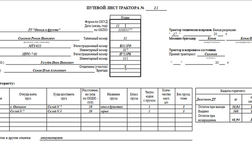 Путевой лист трактора по форме 68 - бланк на 2023 год