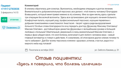 Отзыв пациентки: «Здесь я поверила, что болезнь излечима»