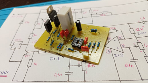 Доброго времени ! Как и планировал собрать линейный , регулируемый блок питания , вот он и получился . Напряжение регулируется 0-31в при входе 37в , ток до 4.6А , можно выставить максимальный ток подбором R12 . Максимальное напряжение подбирается R6 . В первую очередь понравилось : плавность изменения выдаваемых параметров и стабилизация тока . Есть и стабилизация напряжения при изменении на входе . На просторах нета , эта схема с другой микросхемой , содержит 4 операционных усилителя , тут 8-и ногая Lm358...