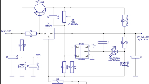 Всем привет! Сегодня речь поведем о сборке линейного блока питания на LM317 и операционного усилителя LM358. Данную схему подглядел на одном каналов Дзена, но вообще она довольно старая. Не смог найти первоисточник. Вот статья описывающая принцип работы. Ниже схема на современных компонентах. Для сравнения привожу и "старую" схему на КР142ЕН5А и ОУ К140УД7. Сначала посмотрел на схему на отечественных элементах, но окинув взглядом свои запасы хламья, не обнаружил такого операционного усилителя. А...