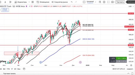 В моменте $SPY ниже 20 EMA D, но, как я отмечал ранее, к нему в последнее время нет уважения, и он спокойно пробивается в обе стороны = поэтому наблюдаем дальше. Однако, можем отметить :$ES1! (без корректировки) который пока что рисует фитиля снизу на 20 EMA D + $MSFT долгое время консолидируется...