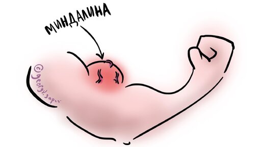 Когда у людей воспаляются небные миндалины, то это называют ангиной. Эти те самые гланды. Вообще в горле у нас спрятаны шесть миндалин, но в зеркало мы с вами видим только две нёбные. Гланды могут увеличиться, на них могут появиться пробки или налет, но самое интересное — это когда на них вылезают вены. Как на бицепсе у спортсмена. Смысл в том же — если что-то было маленьким, а потом увеличилось, то кровь туда хорошо притекает, но скорее всего чуть хуже утекает. Вот вены и расширяются. Понятно, что при увеличении миндалин там может быть инфекция, которая буквально разъедает всё вокруг себя...