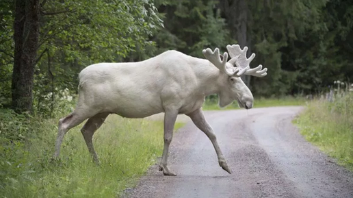 Популяция лосей в Швеции летом достигает 300-400 тысяч особей, но только около ста животных имеют редкую белоснежную окраску...