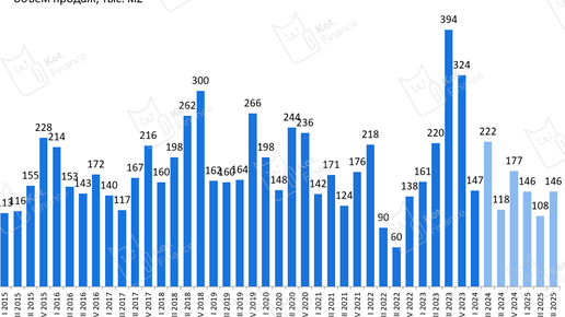 👉Знакомство со строителями ✈️САМОЛЕТ BIG DICK (зачеркнуто) DAY 2024 Несмотря на то, что все эксперты пророчили коллапс рынка после отмены классической льготной ипотеки, отчеты по продажам говорят, что это не так. LTM продажи снизились в 2 раза относительно раздутых периодов льготной, но сравнивая с 2021-2022 годами – всё достойно. И это в квадратных метрах Квартально результаты хороши (на слайде...