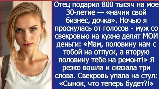 Папа подарил мне 800 тысяч на открытие бизнеса. Но муж со свекровью уже все решили...