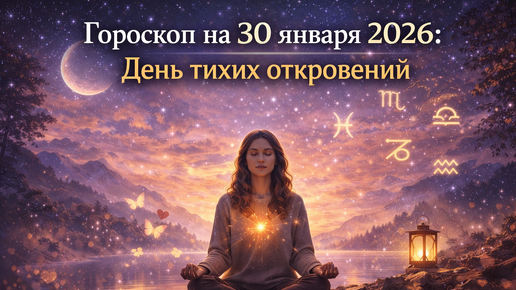 Пятница. Последний рабочий день недели. Но если вы оказались здесь сейчас — значит, этот день для вас не случайный. 30 января 2026 — день, когда небо говорит шёпотом. Не через громкие события. Не через резкие перемены. А через тихие знаки. Внутренние ощущения. Случайные встречи, которые окажутся неслучайными. Луна сегодня растёт, но медленно. Как будто набирает силу постепенно, осторожно. Она проходит через участок неба, который отвечает за дом, семью, внутренний мир. Это значит: сегодня важнее не внешние достижения, а внутренняя гармония...