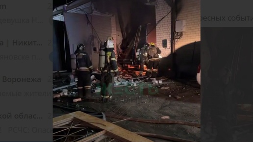 Появилось видео пожара после взрыва газового баллона в Воронеже