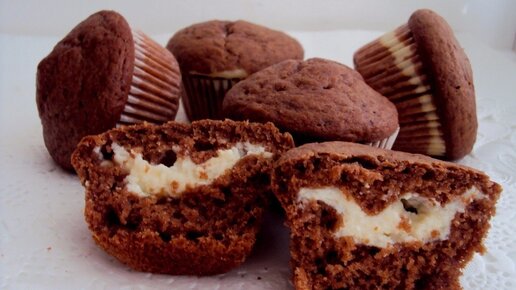 1) ШОКОЛАДНЫЕ МАФФИНЫ С КРЕМОМ Ингредиенты: ● 300 г муки ● 2 яйца ● 160 г сахара ● 150 г растопленного сливочного масла ● 170 мл молока ● 2 ст.л. какао ● 2 ч.л. разрыхлителя ● 1/2 ч.л. соды ● щепотка соли Для заварного крема: ● 2 желтка ● 20 г сахарной пудры ● 20 г муки ● 200 мл молока ● 20 г сахара ● 1 пакетик ванильного сахара Приготовление: 1. Приготовьте заварной крем.Смешайте желтки с сахарной пудрой и мукой. Подогрейте до кипения молоко с сахаром.Залейте молоком желтки, активно помешивая...
